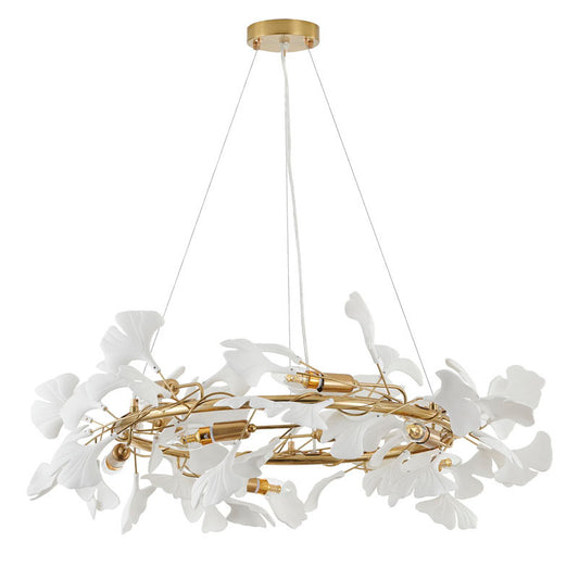 Round Chandelier with White Acrylic Leaf Accents