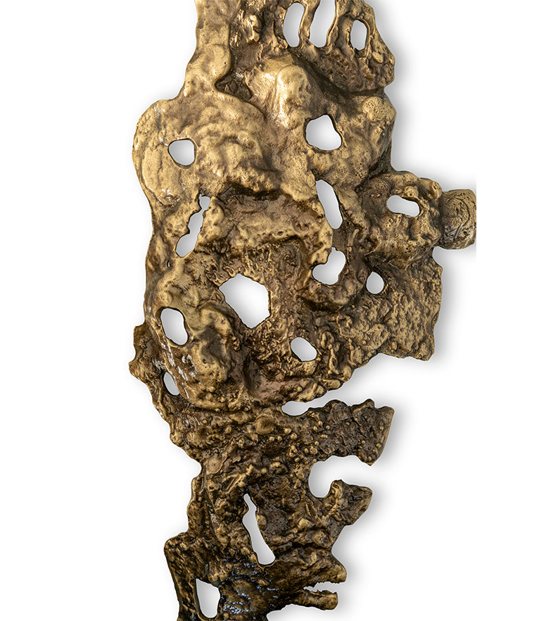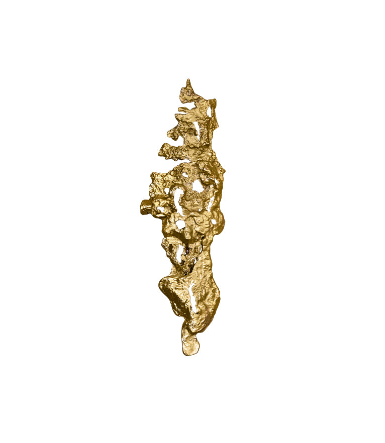 The Cay Wall Light has a structure in casted brass with a modern design inspired by the lava flow from an eruption volcano. Bring nature's force and fierceness into your modern contemporary home design with this brass sconce filling it with a soft golden light.