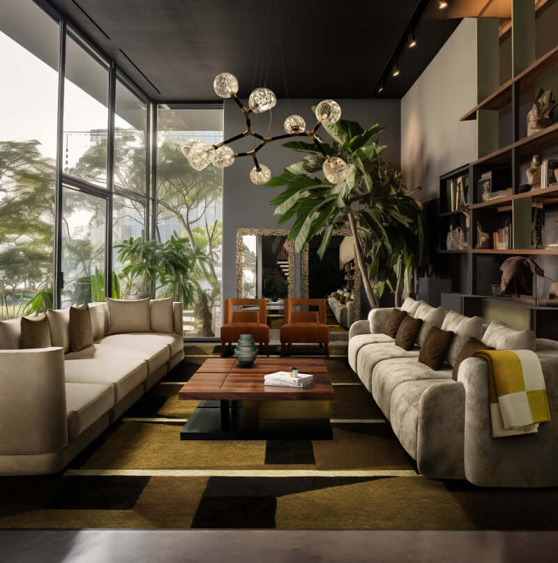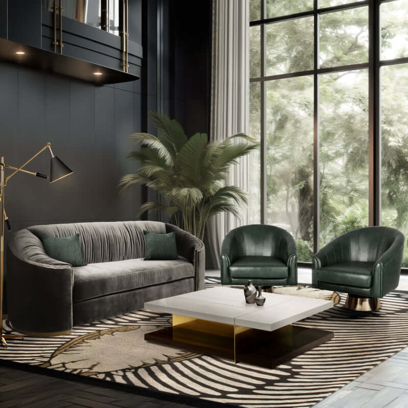 The Lallan Coffee Table combines four different materials and finishes: pallisander veneer, black lacquer, polished and antique brass. All these elements harmoniously integrate with each other, creating a unique modern midcentury coffee table. The ideal addition to your modern interior design.