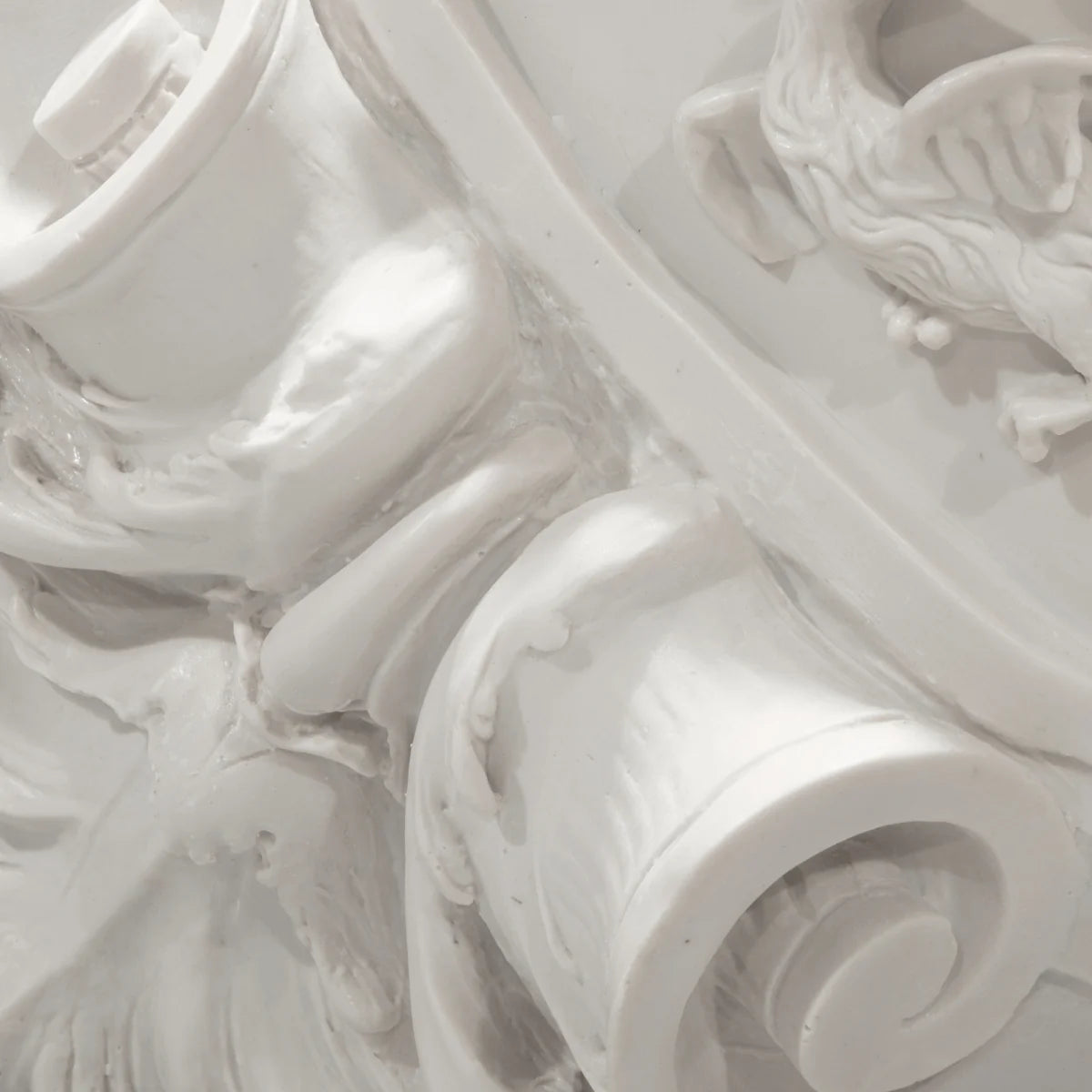 Materials & Finishes Resin/fiber, velvet, acrylic and wood. Finished with restoration techniques similar to stone