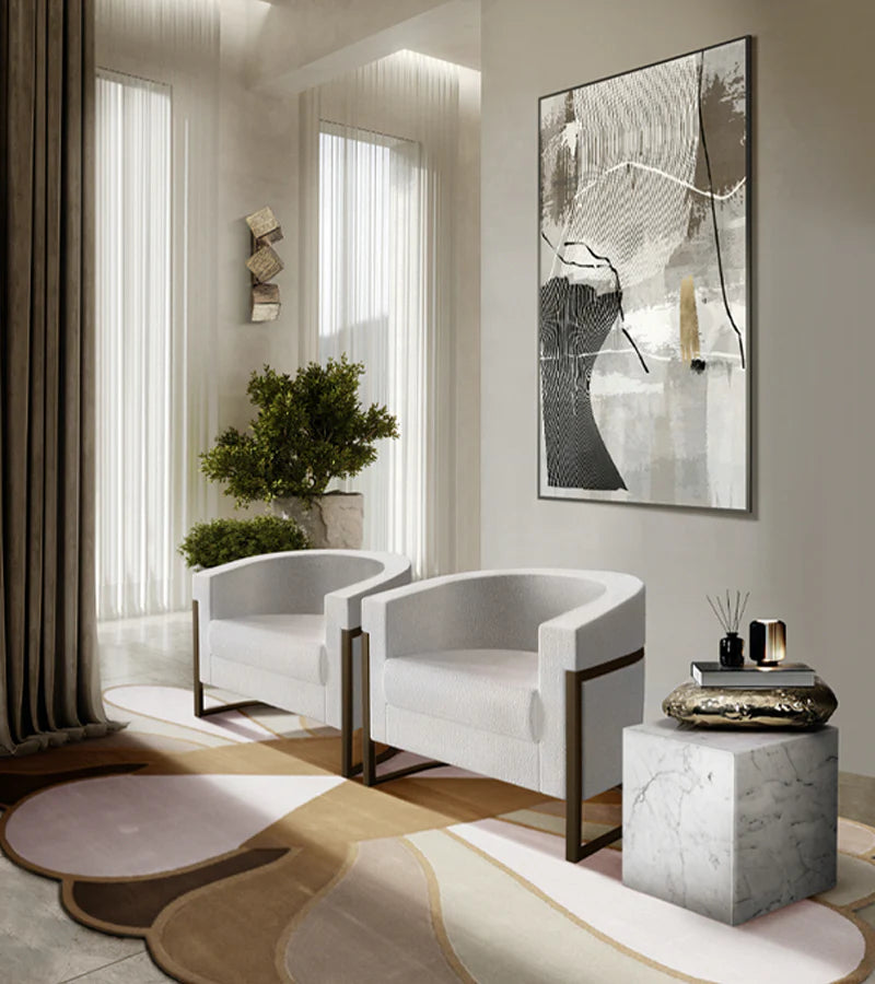 Colombia armchair, inspired by its coffee taste, breathes comfort and elegance into any living room design. Made from boucle fabric and dark bronze matte, this armchair will bring that serene atmosphere we often associate with minimal interiors. Take a moment for yourself and enjoy the simplest things in life with the Colombia armchair!