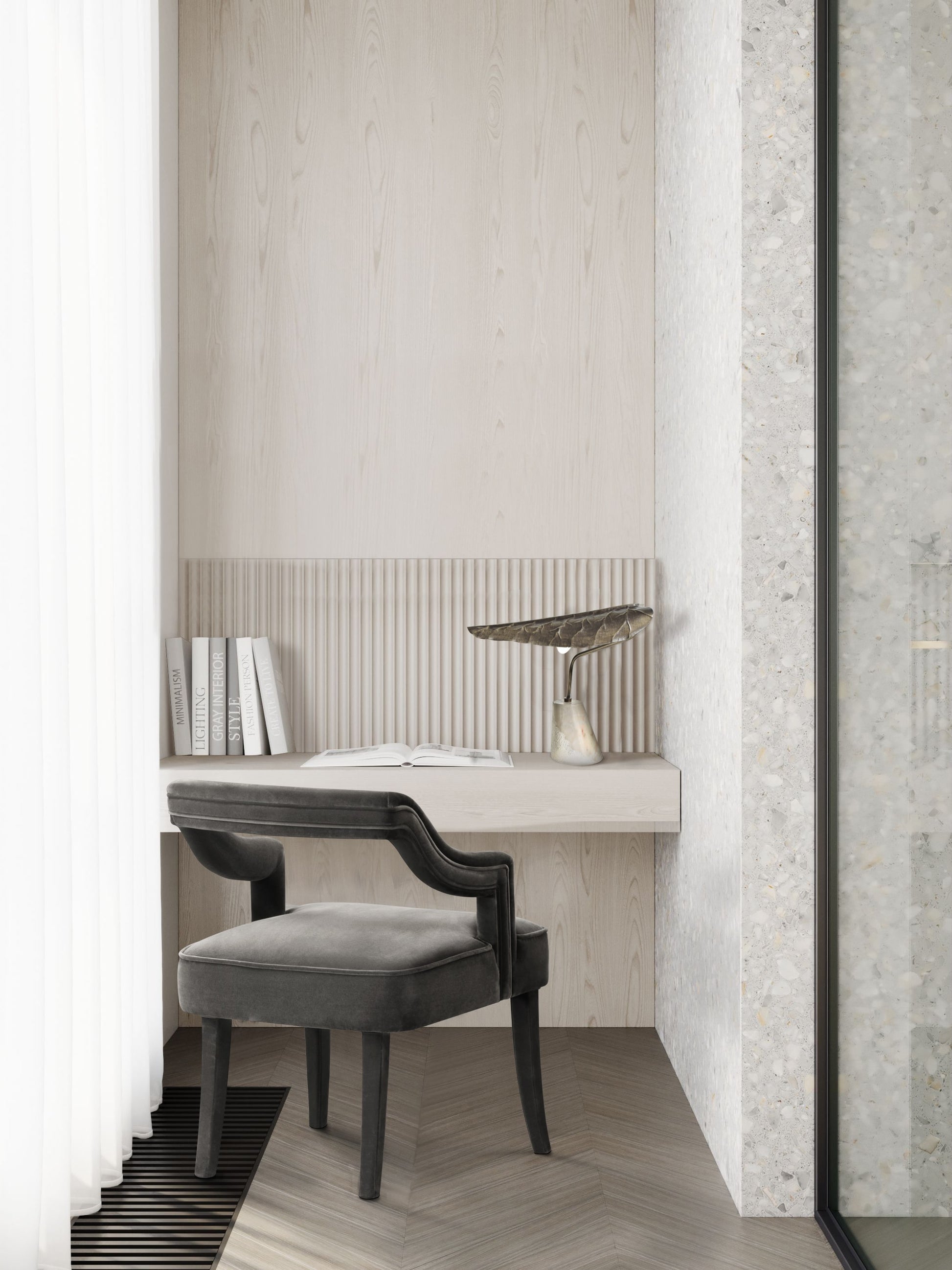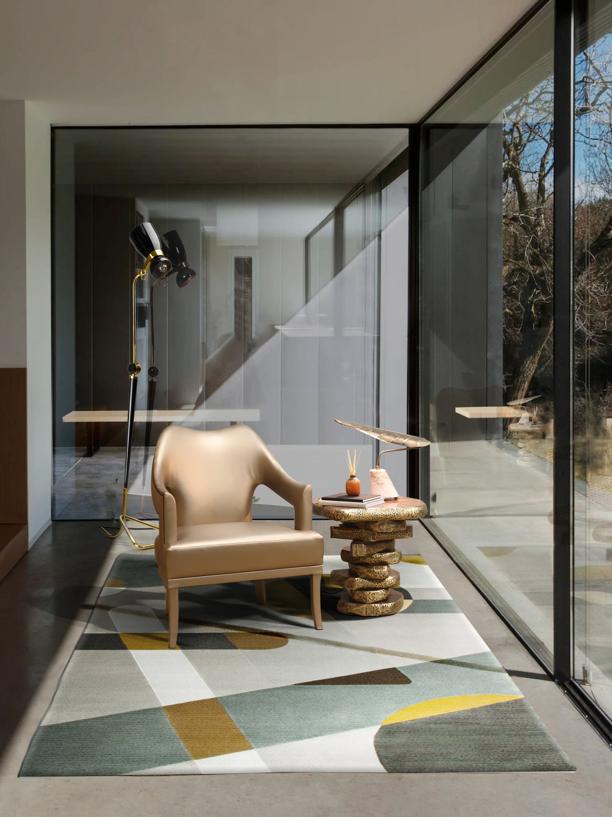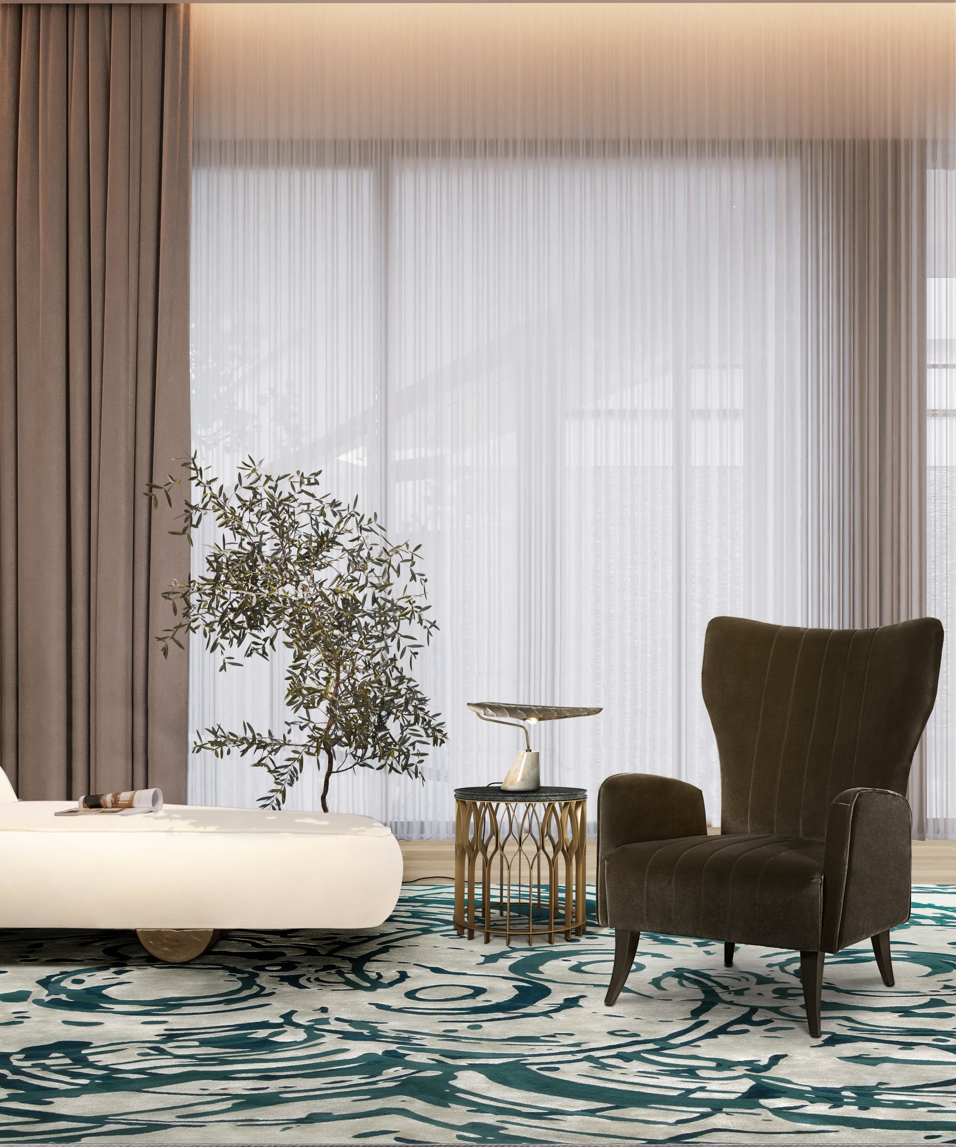 The Calla Table Light has a base in Estremoz Marble with a diffuser in brushed aged matte brass in the shape of an elegant leaf. Inspired by the Cally Lily Flower, original from South Africa, this modern table lamp will shine a warm and comfortable light in your modern interior design.