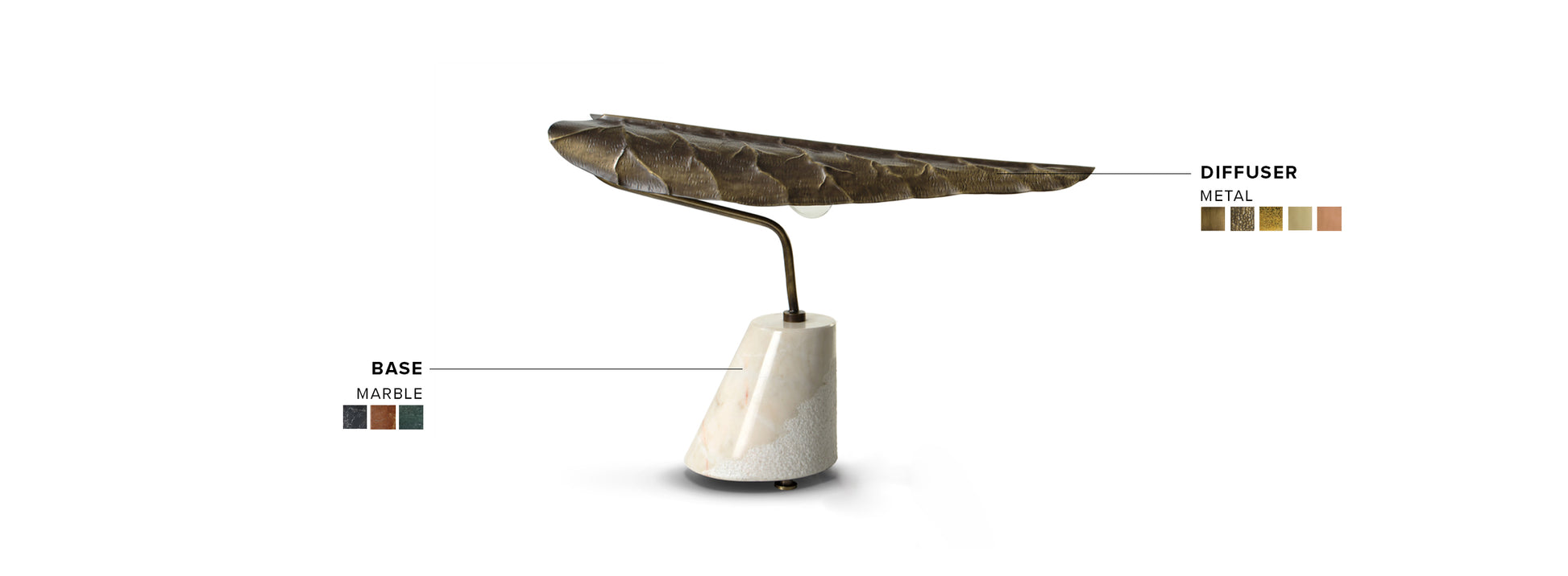 - Diffuser: Hammered aged brass.