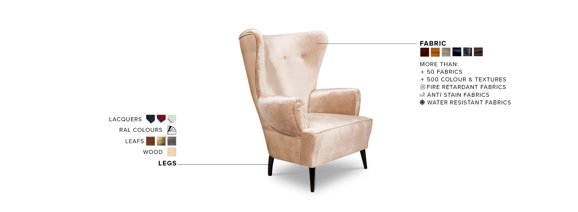 The Clerk Armchair is a velvet upholstered armchair with legs in high gloss lacquered. A contemporary armchair that will undoubtedly liven up any living room set or workplace decor. The inspiration for this chair was the Bishop and Clerk, an imposing mountain peak in Australia with a breathtaking vista.