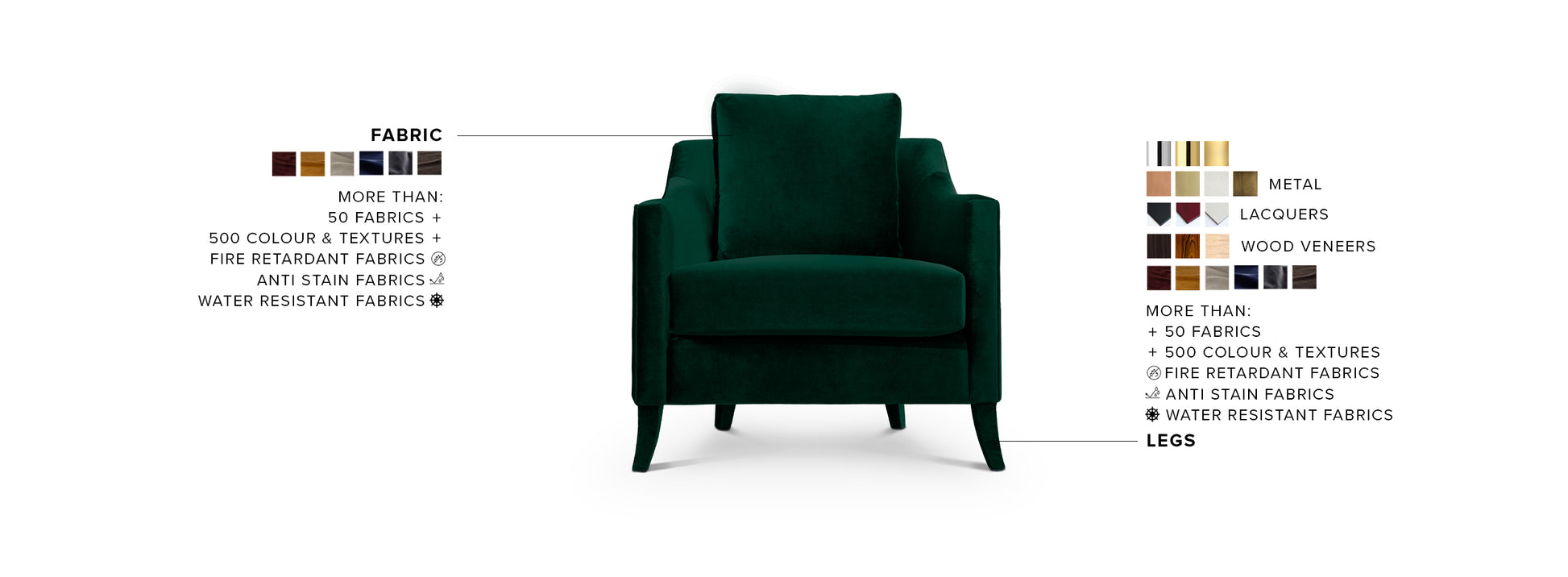 The Como Armchair is a fully upholstered armchair in cotton velvet, inspired by the beautiful scenery of Lake Como, in Italy. This modern contemporary fully upholstered armchair is the perfect choice for a modern living room design. The Como Velvet Armchair will bring nature-inspired into your modern home design.
