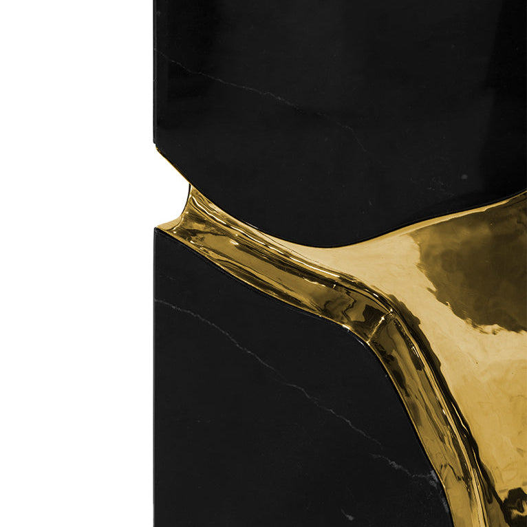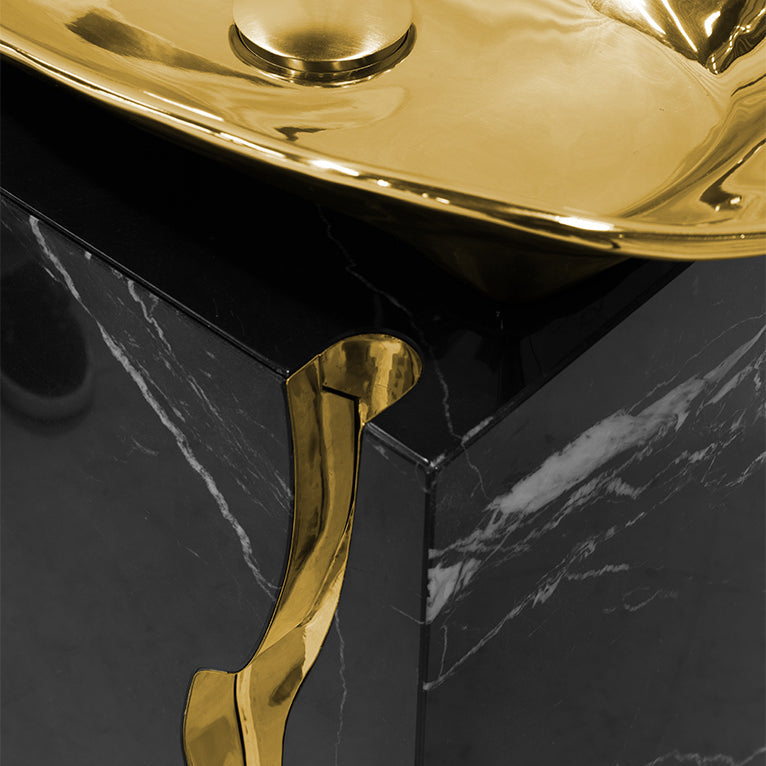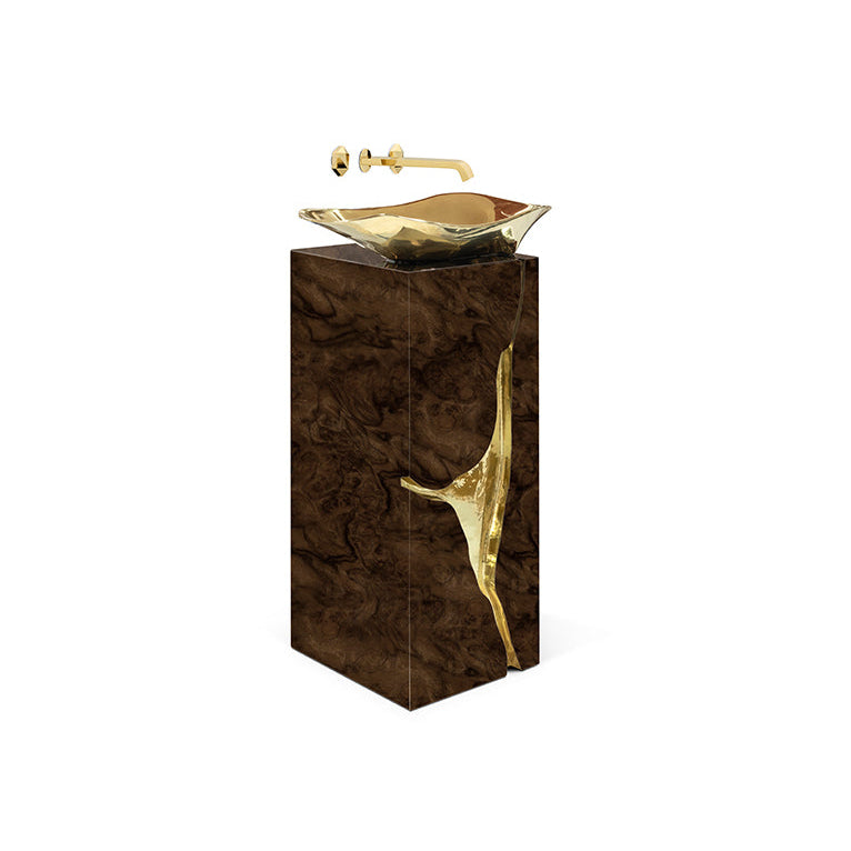 The Lapiaz Pedestal Sink is the stuff of dreams, featuring an iconic and easily recognizable golden fissure handcrafted in polished brass, generating a dazzling organic finish. The sink's square structure is wooden and coated in stainless steel, awarding this astonishing item a reflective luxurious effect. Its golden appearance will certainly upgrade your bathroom into a luxury bathroom oasis.