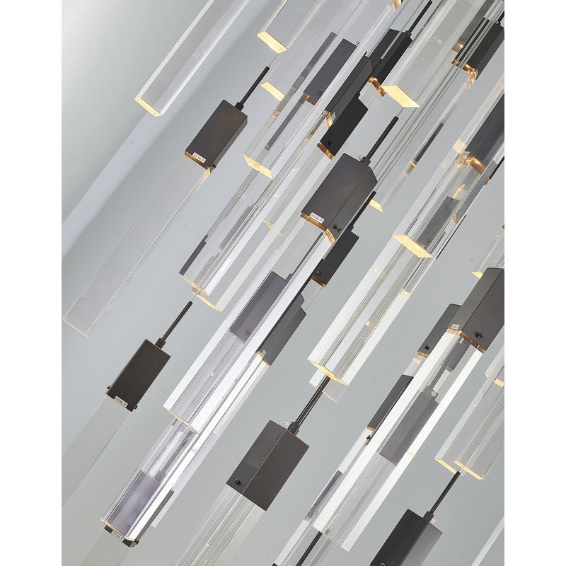 • Clear block pendant crystals offer a geometric, shimmering light effect
