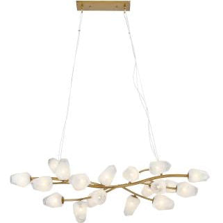Inspired by organic form and elevated with a luxe finish, the Gold Branch Frame Chandelier with White Glass Shades brings sculptural elegance to any space. The branching gold metal frame mimics the graceful lines of nature, while smooth white glass shades provide a soft, diffused glow. The combination of warm metallic tones and minimalist glass creates a harmonious balance between natural beauty and modern sophistication.