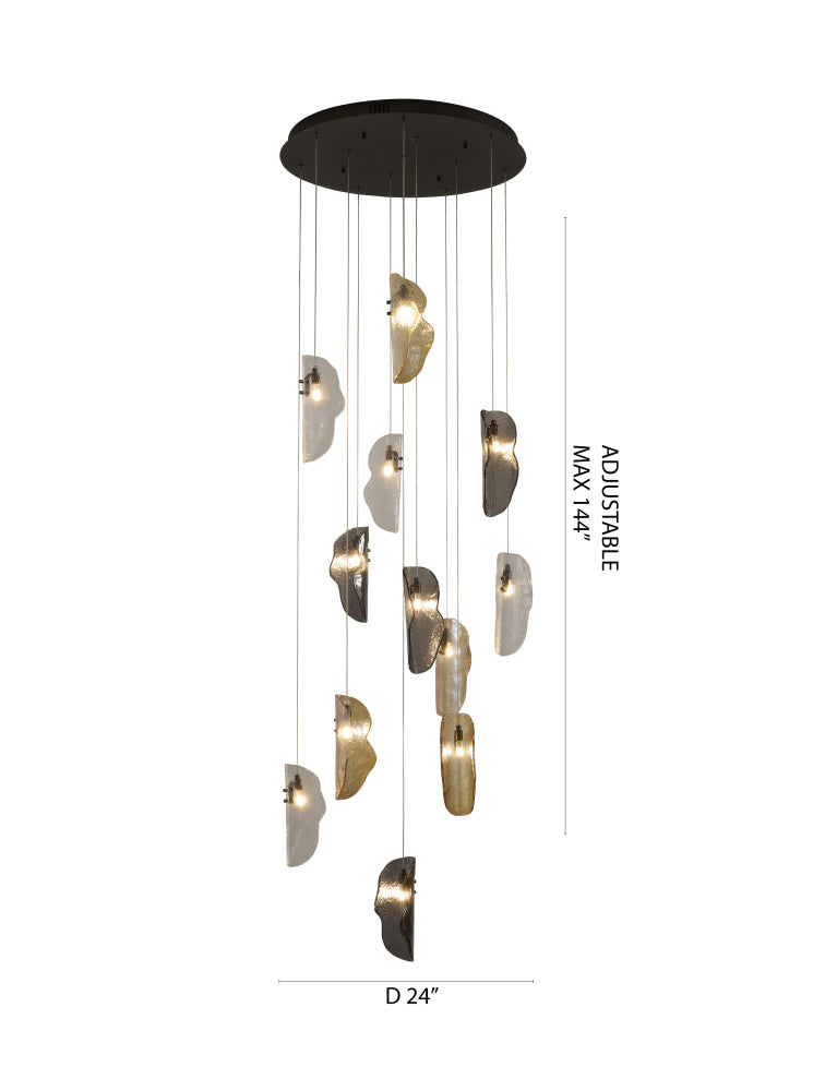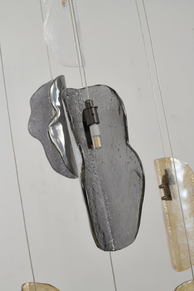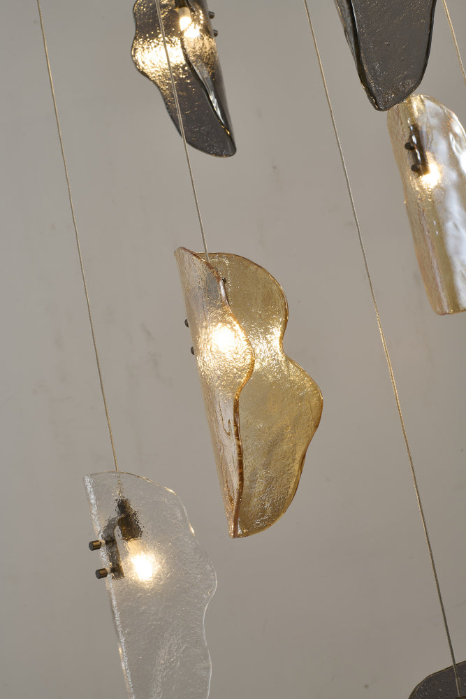 - Clear, smoke, and amber glass pendants for a rich, multi-tonal glow