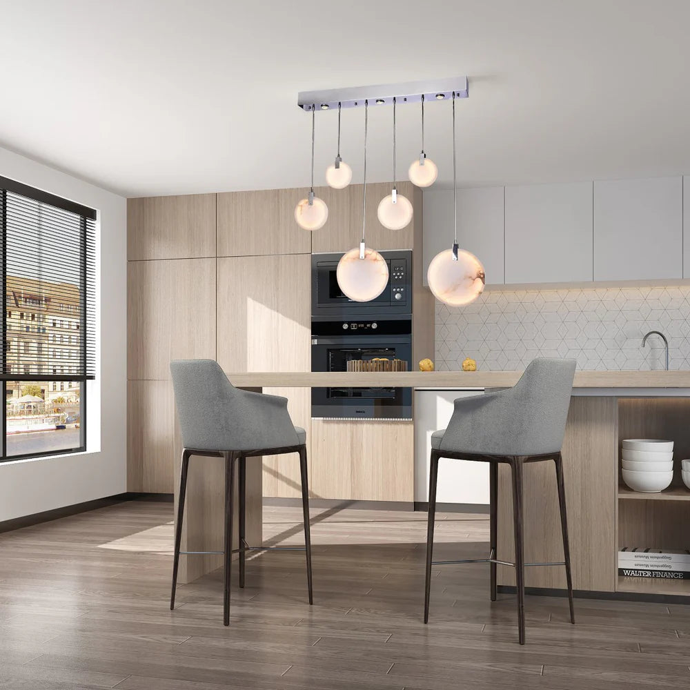 Elevate your interior space with the Bethel Chrome LED Chandelier, a stunning fusion of modern elegance and timeless design. Crafted from durable stainless steel and featuring exquisite Spanish marble pendants, this chandelier not only illuminates but also enhances the aesthetic of any room. Its sleek chrome finish adds a contemporary touch, making it the perfect centerpiece for dining areas, living rooms, or entryways. With adjustable hanging lengths, this fixture accommodates various ceiling heights while providing a warm 2700K glow, creating a welcoming atmosphere.