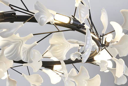Round Black Chandelier with White Leaf Accents