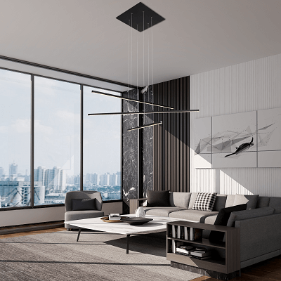 Matte Black Frame LED Ceiling Fixture With Hanging Stick Pendants