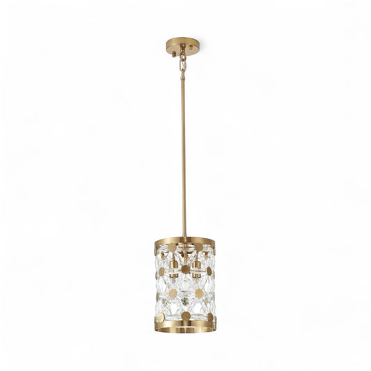 Gold Stainless Steel Pendant Light with Clear Hanging Crystal Beads