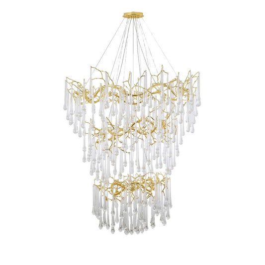 3 Tier Gold Solid Brass Frame Chandelier with Clear Glass Hanging Drops