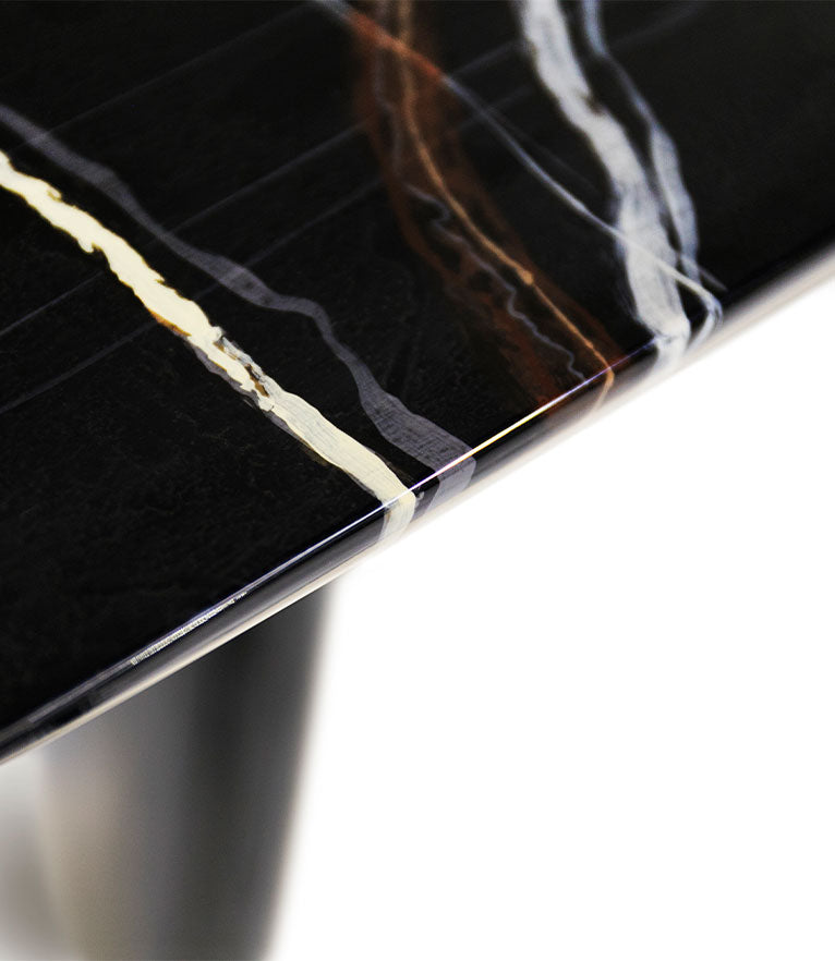 The Ardara II Console has a Sahara Noi faux-marble glossy painting structure. Inspired by Dolmens, the ancient stone monuments from the Neolithic, this modern console table will bring uniqueness to your modern interior design. The Ardara II Console Table is the ideal addition to any modern entryway decor.