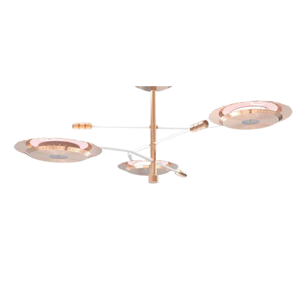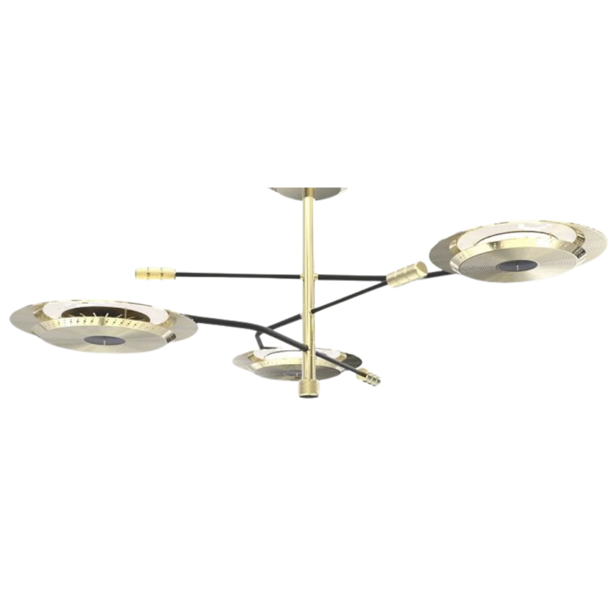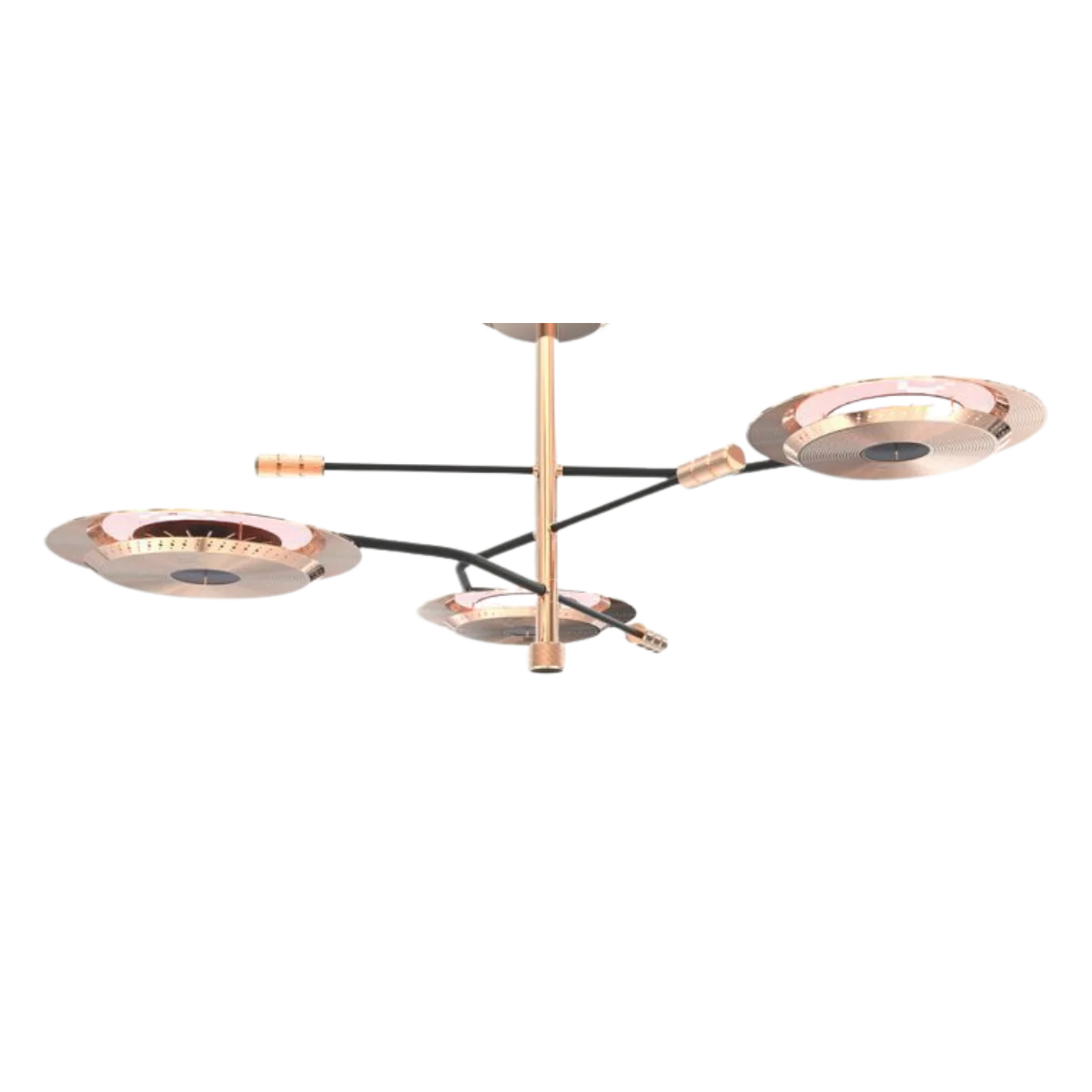 The Hendrix Suspension Lamp by Delightfull pays tribute to the legendary Jimi Hendrix, transforming musical inspiration into a striking mid-century modern chandelier. With its gold-plated and black matte brass structure, this luminaire recalls the vibrancy of a golden vinyl player, capturing rhythm, movement, and elegance in light form.