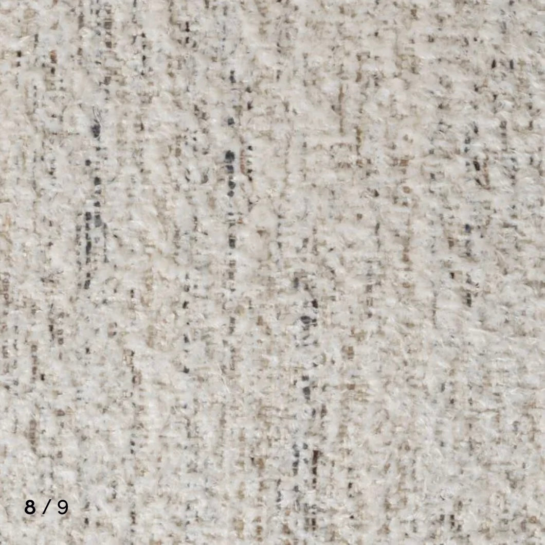 Elevate your bedroom with the Mellory Bed Frame in seashell off-white, offering a serene and sophisticated ambiance.