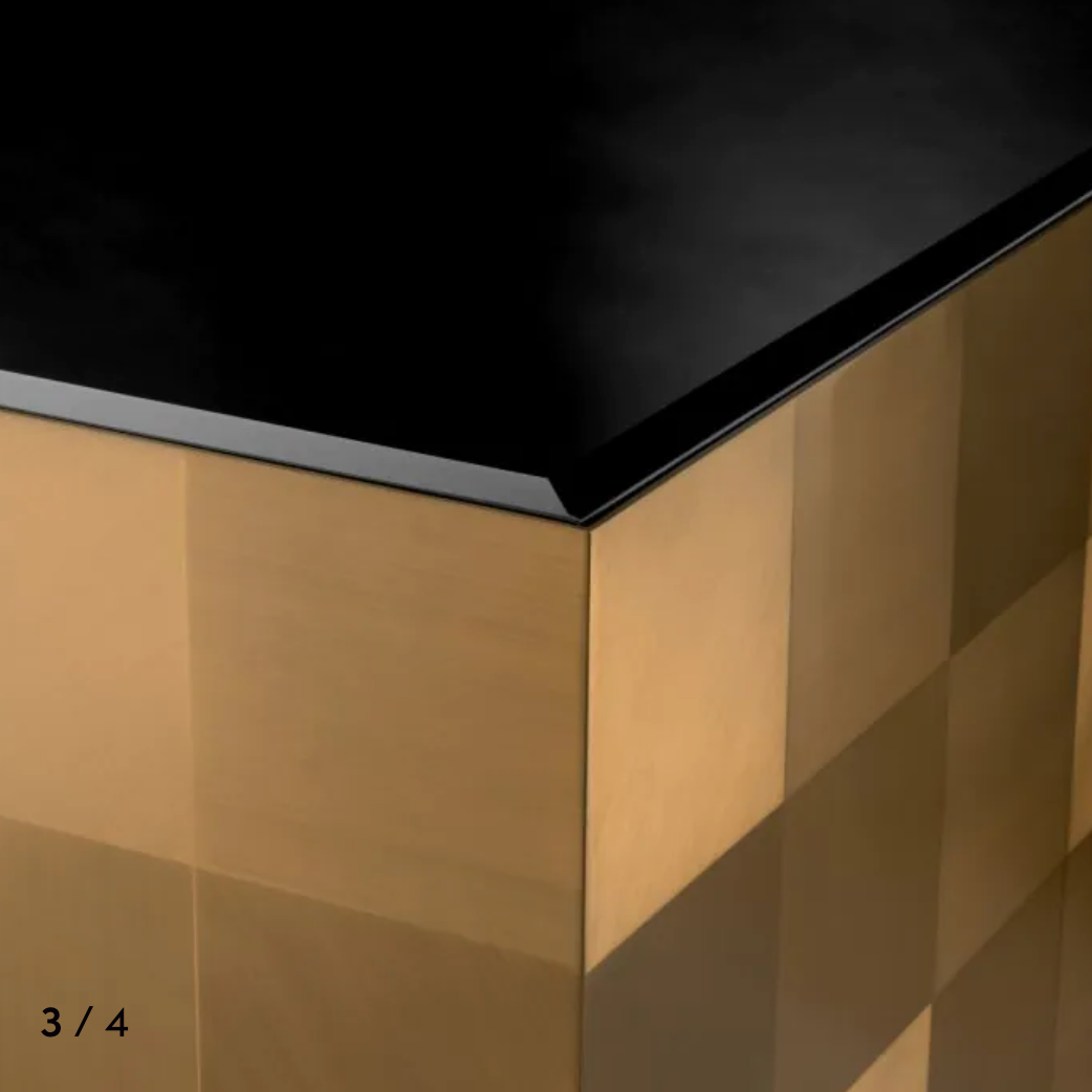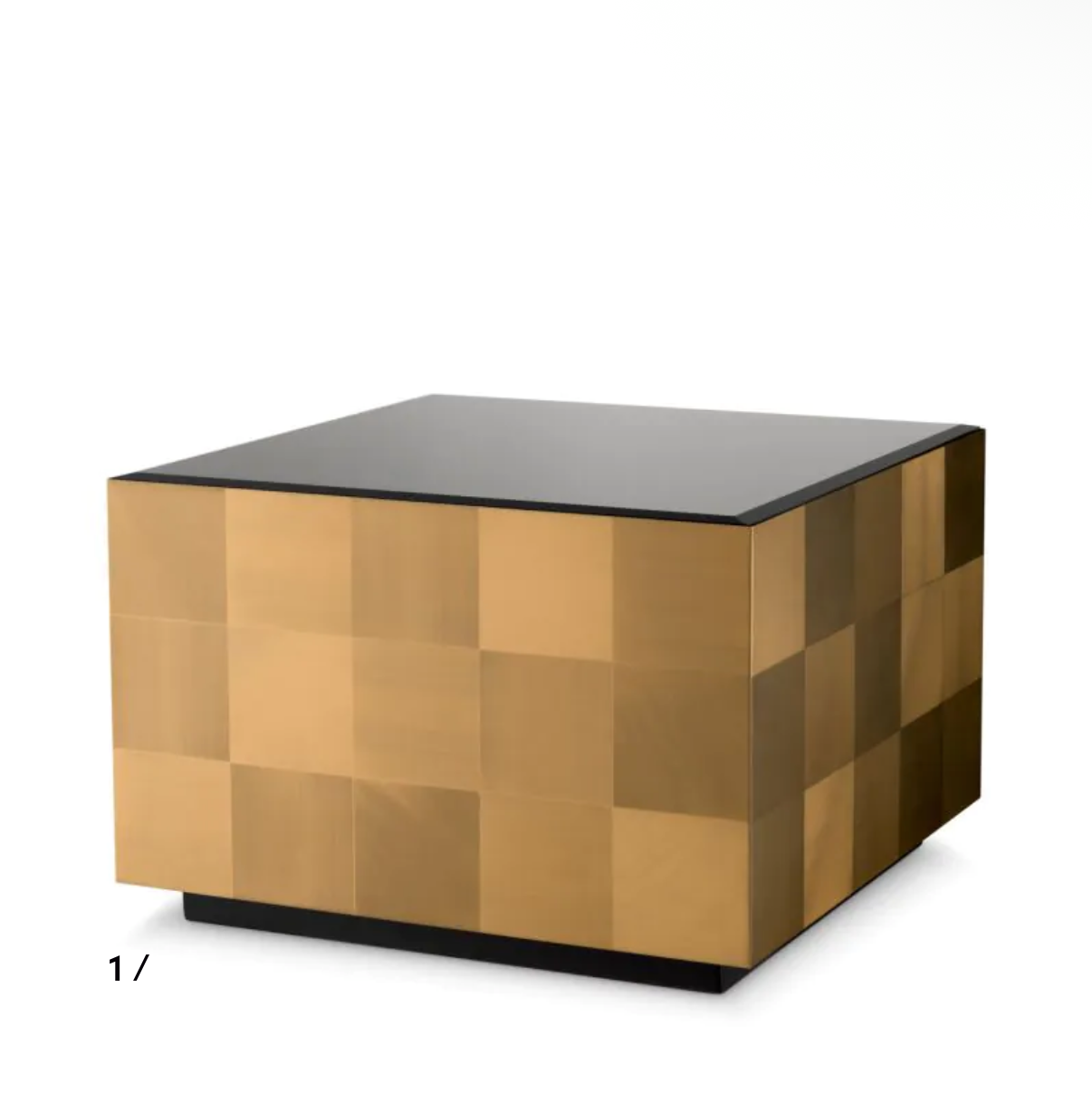 This square-shaped coffee table features a brushed brass finish and a sleek black glass top, combining modern aesthetics with timeless elegance. The Saint John Coffee Table from Eichholtz is designed to be a striking centerpiece, offering both sophistication and functionality to elevate your home decor with its eye-catching design.