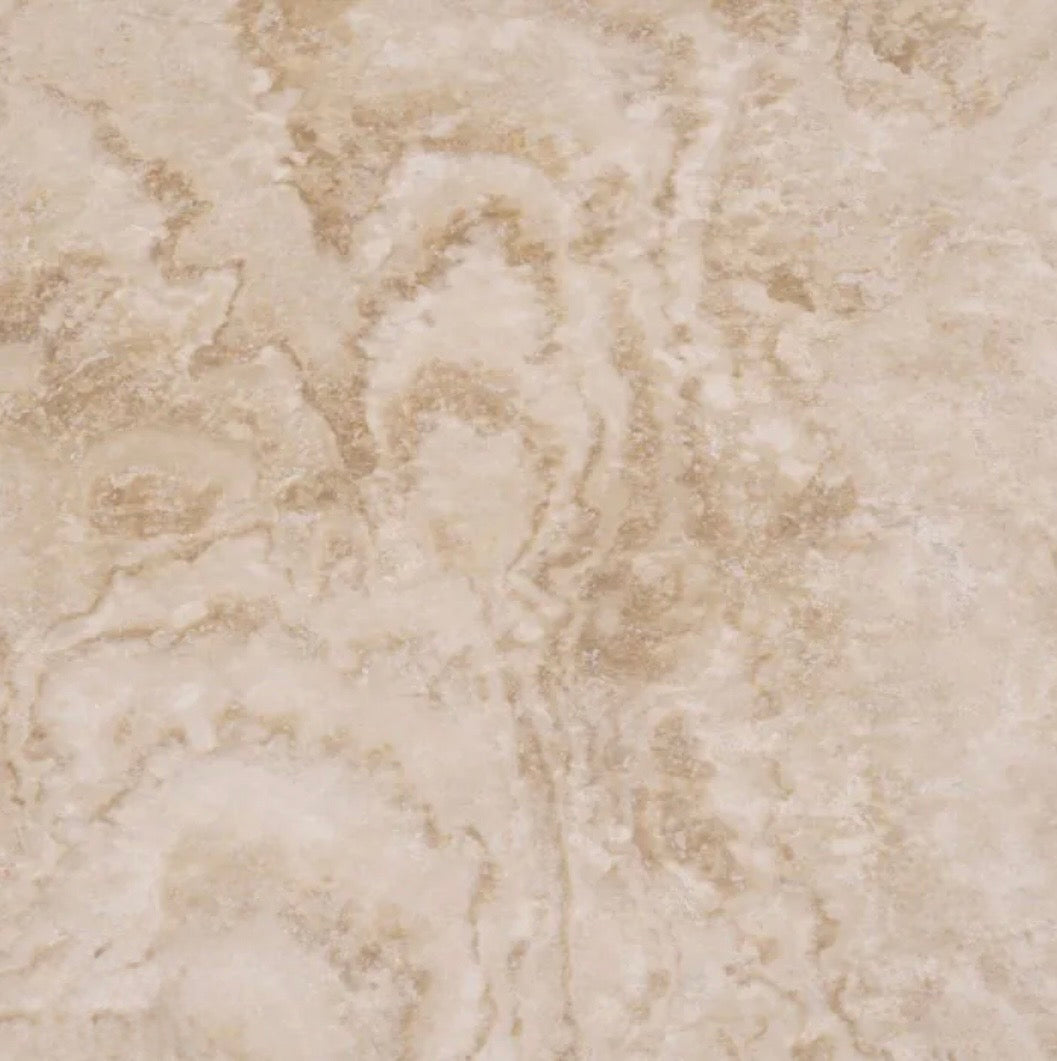 The Zenitho Coffee Table features a solid travertine construction, showcasing natural veining and warm earthy tones.