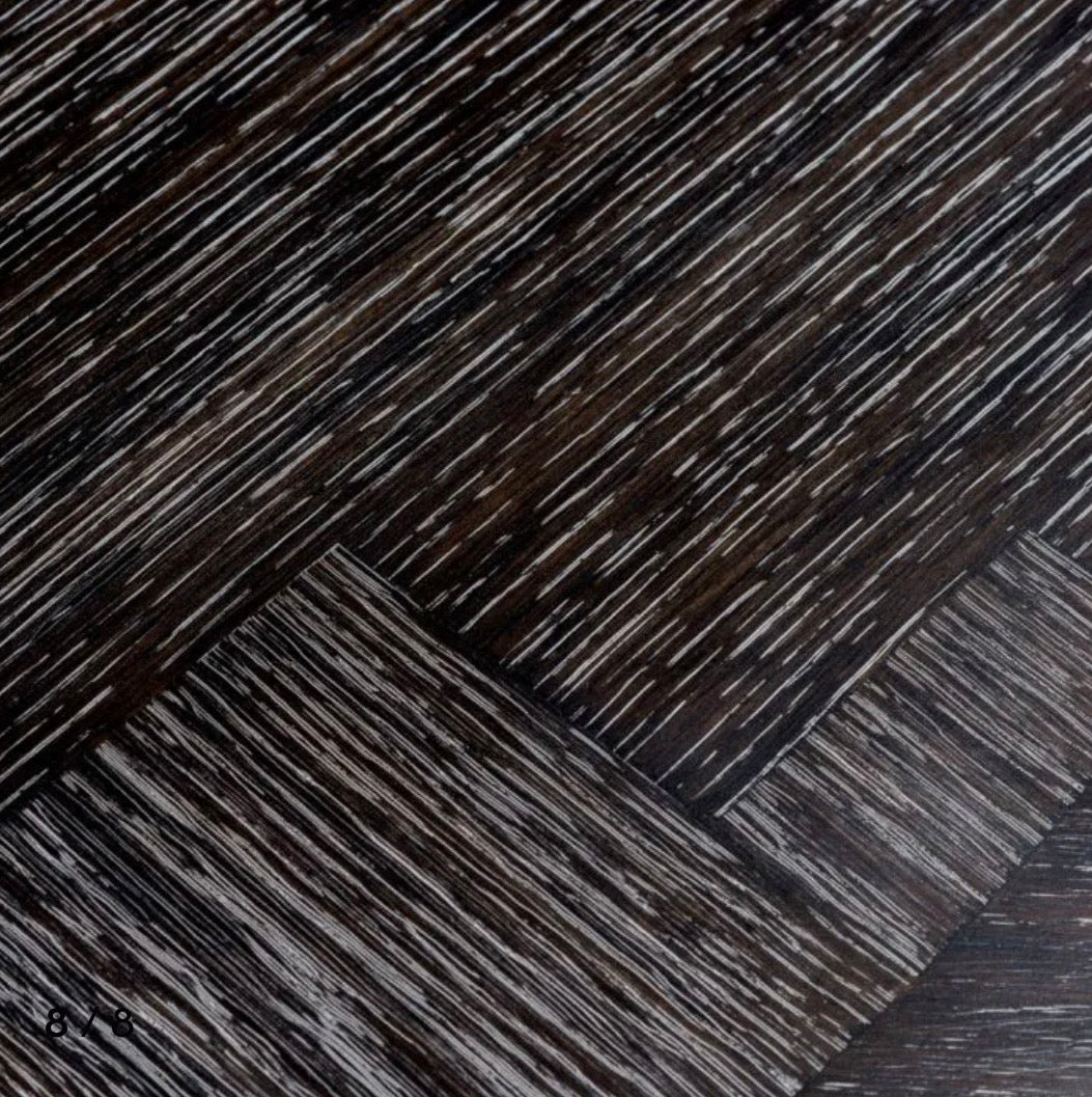 As the beautiful herringbone pattern of this oval dining table shows, veneers are very suitable for marquetry. High-quality veneer lasts longer than solid wood which warps or cracks over time.Dimensions