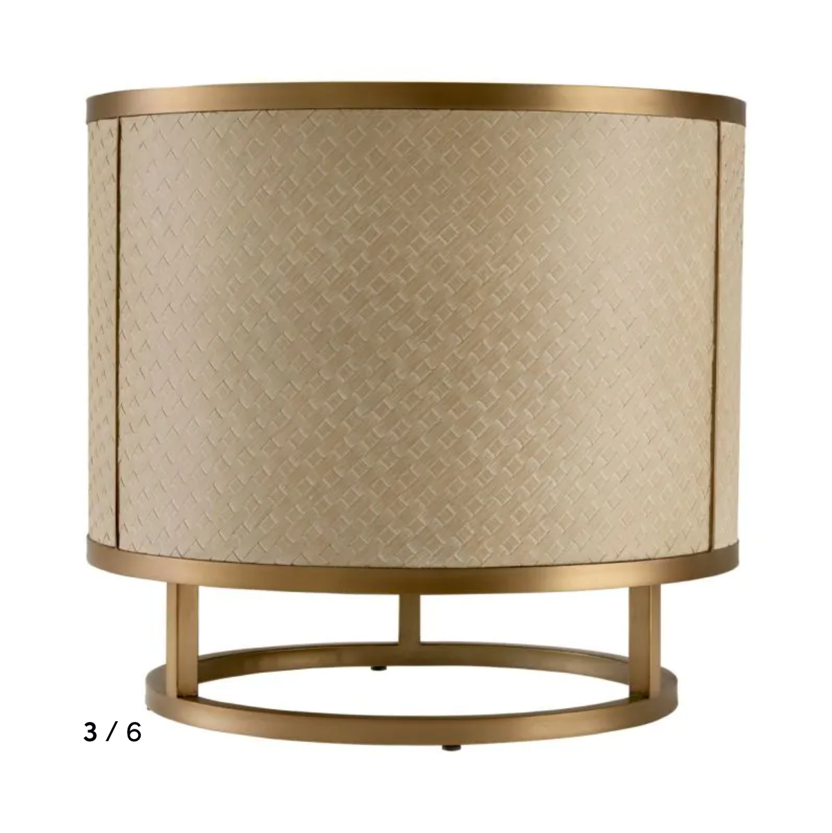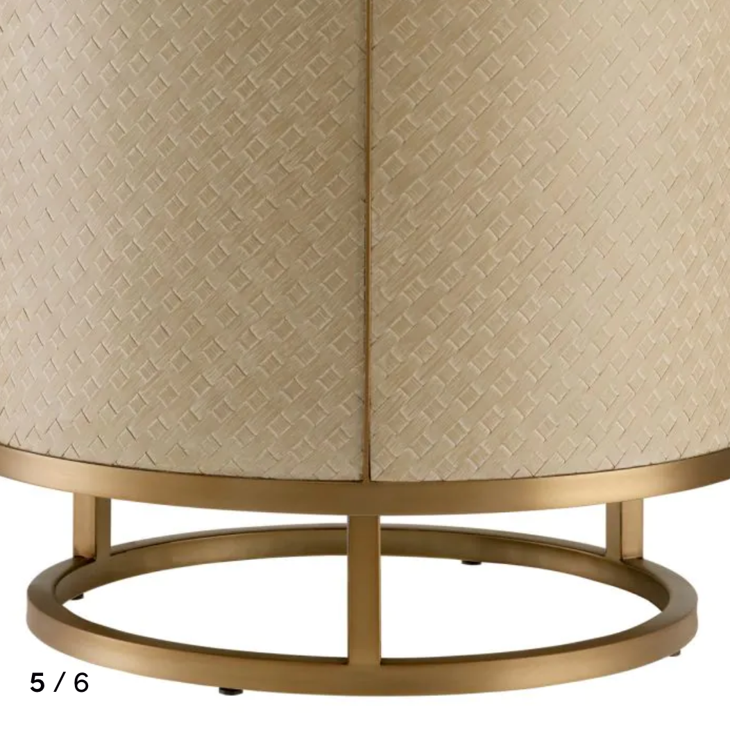 Lined with woven washed oak veneer and accentuated by a brushed brass finish frame and hardware, this classy furniture works with many interior styles.
