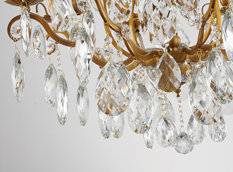 Brass Iron Frame Chandelier with Clear Hanging Crystals