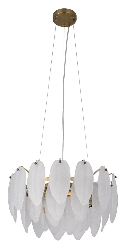 Exquisite Brass Chandelier with Frosted Glass Leaves