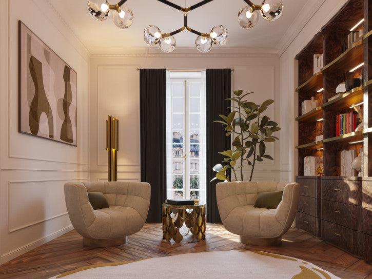 The Cyrus Floor Lamp has a structure in glossy aged brushed brass making it an elegant and exquisite modern lighting choice for your modern interior design. Inspired by Cyrus, the brave Persian King who conquered Babylonia, this magnificent modern floor lamp will provide a golden soft glow into your modern interior design.