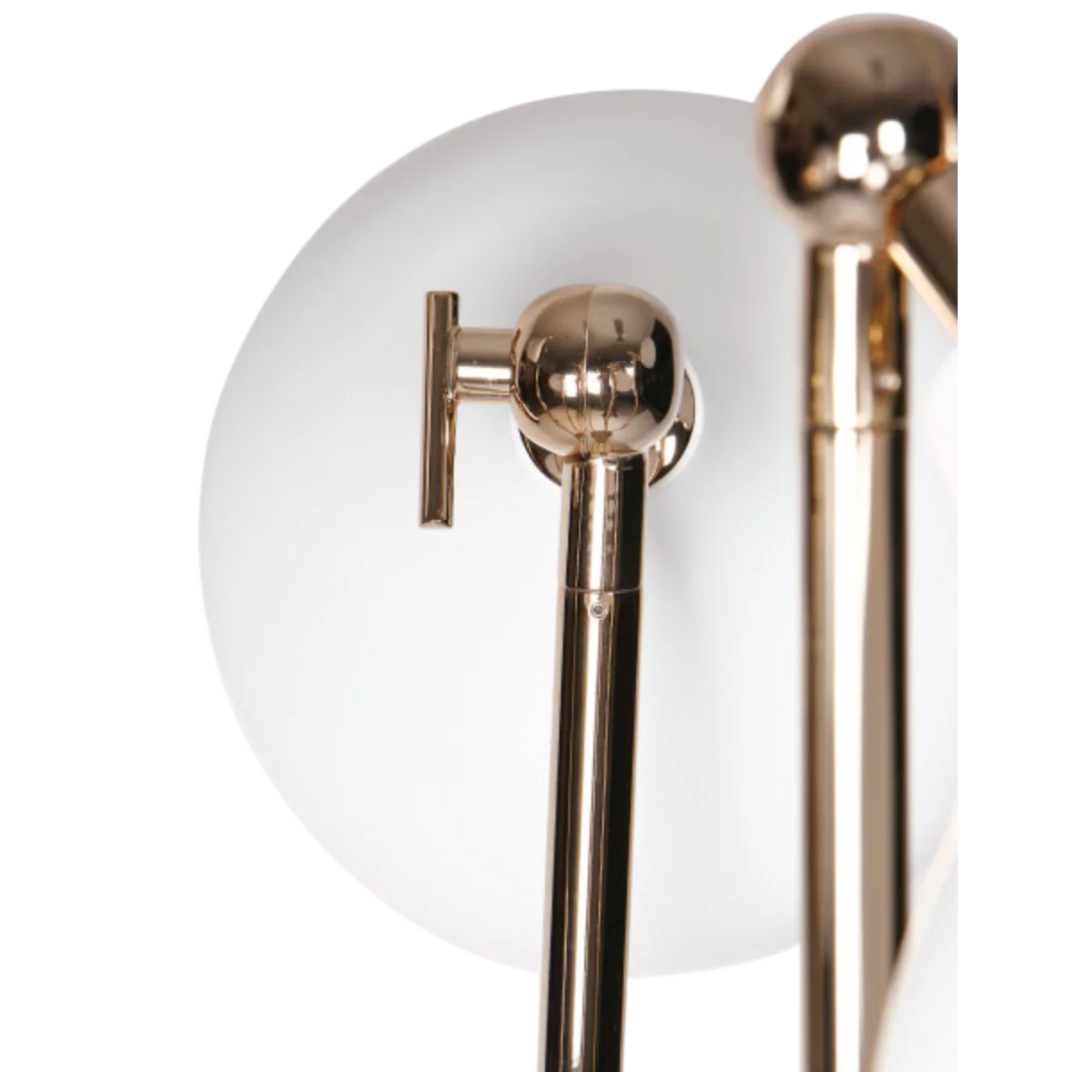 Hanna is a vintage floor lamp that will suit perfectly in your mid-century modern living room or vintage retro design hallway. With a structure made of polished marble estremoz and with multiple lamp shades made of brass and aluminum, this floor light is a pure mid-century modern lamp full of grace and charm. Its flexible lamp shades allow you to spread the light anywhere you want it to be. Bathed in gold plated and matte white finishes, Hanna showcases a high-quality craftsmanship, since it was applied an ancient technique called hand metal spinning. On the whole, this brass floor lamp reports to a classical ambiance, back to art deco, evoking a powerful mid-century modern design.