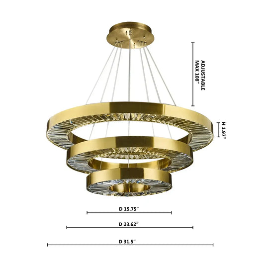 3 Ring Modern Gold Crystal LED Chandelier by Bethel International