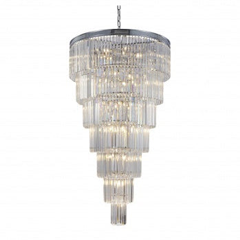 7 Tier Chrome Frame Chandelier with Clear Hanging Crystals