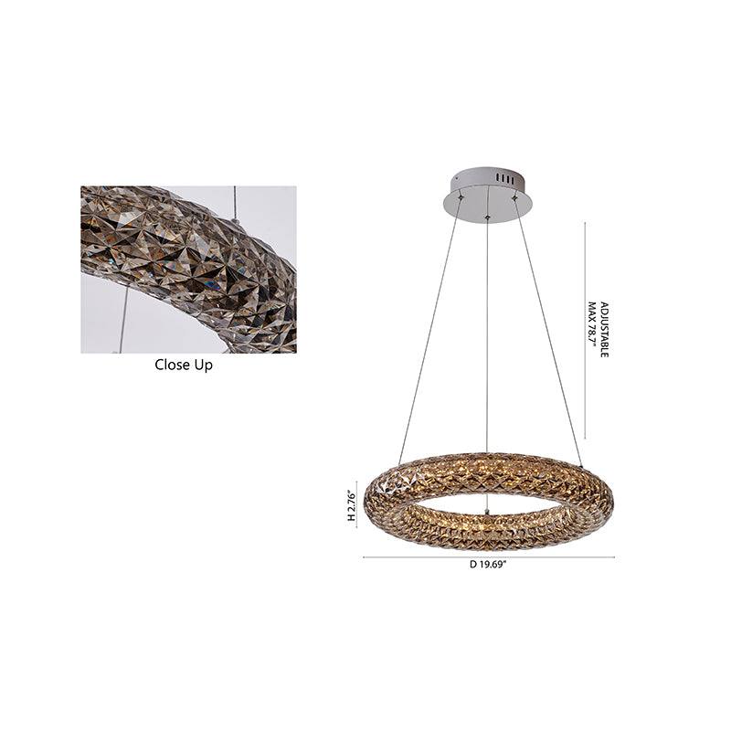 Bring a touch of modern sophistication to your space with the OC40C19C Clear Acrylic Halo Ring Chandelier by Bethel International. This sleek fixture features a radiant clear acrylic ring suspended by adjustable cords and anchored by gleaming chrome hardware. With its integrated LED lighting and dimmable functionality, it delivers both elegance and versatility for contemporary interiors.