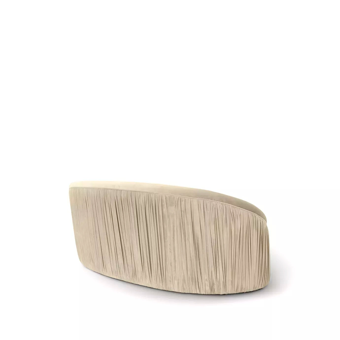 Sexy, mysterious and uninterrupted lines give this sofa highly acclaimed glamour. Upholstered in sumptuous fabric, the plisse base makes this a truly luscious lounge sofa.