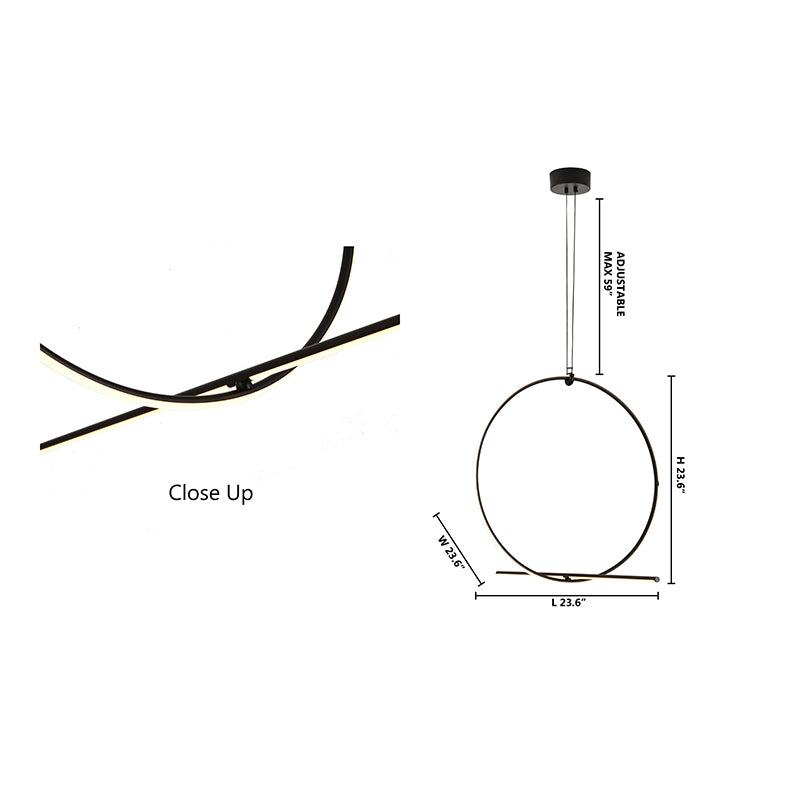 A sleek black metal LED chandelier featuring a smooth white acrylic diffuser for soft, even illumination. This contemporary fixture is suspended by adjustable cords for customizable installation height. LED bulbs included.