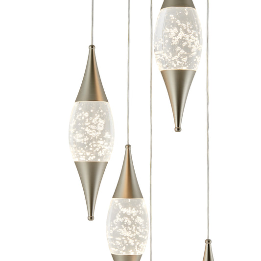 Matte Nickel Shinny Teardrops Round Chandelier