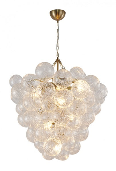 Brass Frame Chandelier featuring Clear Swirl Glass Shades