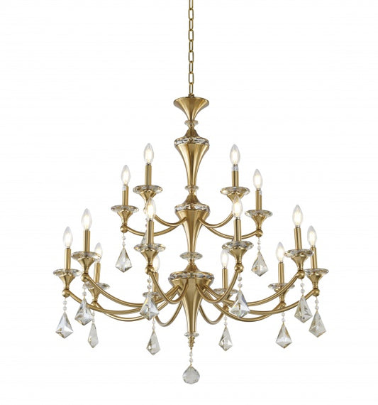 Two-Tier Satin Brass Frame with Champagne Hanging Crystals Accents