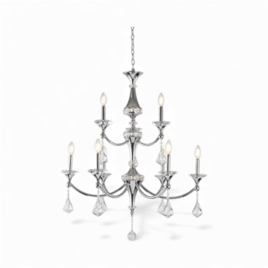 Chrome Frame Waterfall Chandelier with Clear Hanging Crystals