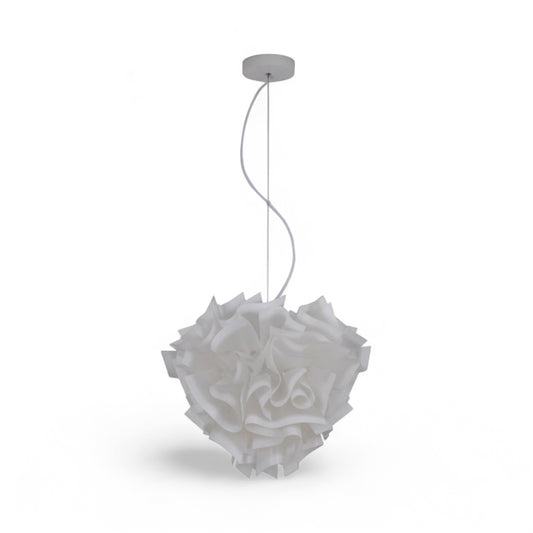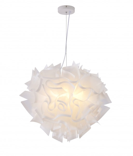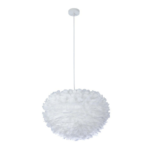Gray/White Goose Feather Ball Ceiling Fixture With A White Iron Frame