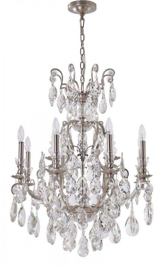Pewter Metal Frame Chandelier with Clear Hanging Crystals