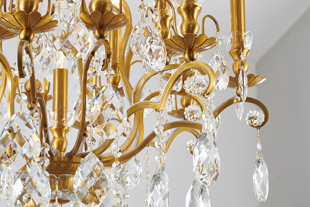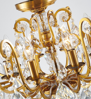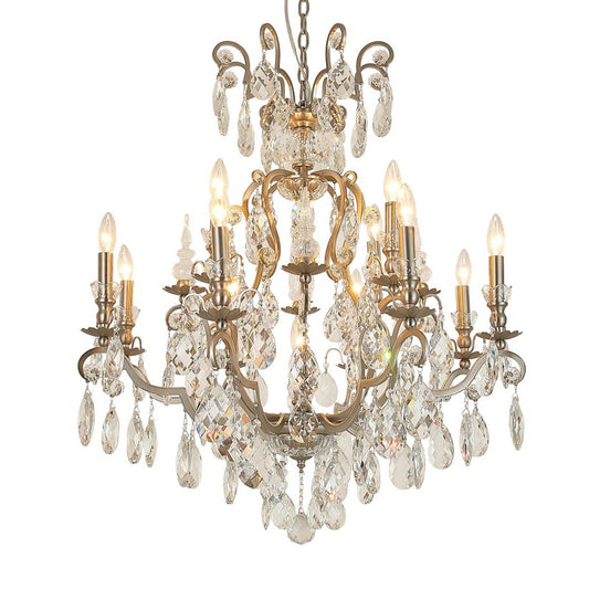 Brass Iron Frame Chandelier with Clear Hanging Crystals