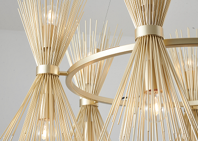 Round Gold Iron Frame Chandelier with Spiked Cone Shades