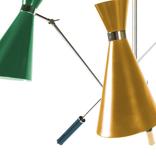 Round Gold Iron Frame Chandelier with Spiked Cone Shades