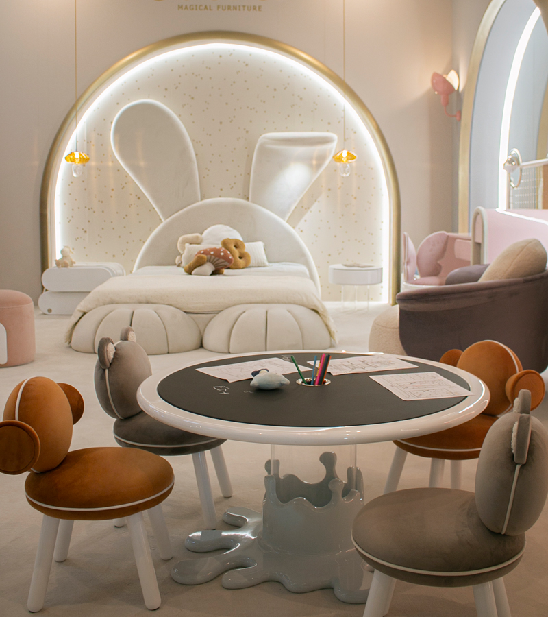 Its softly glowing translucent glass shade, available in clear or color-tinted finishes, is crowned with a gold-plated accent, combining fairytale elegance with contemporary design. More than a lighting piece, it’s a daily reminder for children to grow into their best selves — filled with curiosity, imagination, and joy.