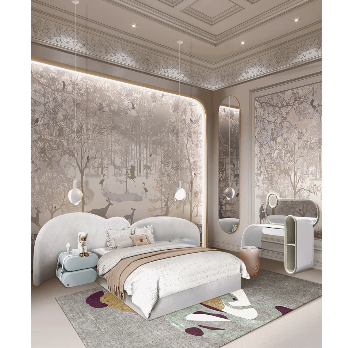 Inspired by the Mowgli movie, this rug has a rectangular shape with a very unique design. The Kaa Rug makes use of fun and natural colors and it's the ideal rug for any playroom or bedroom that wishes to bring natural elements to life.