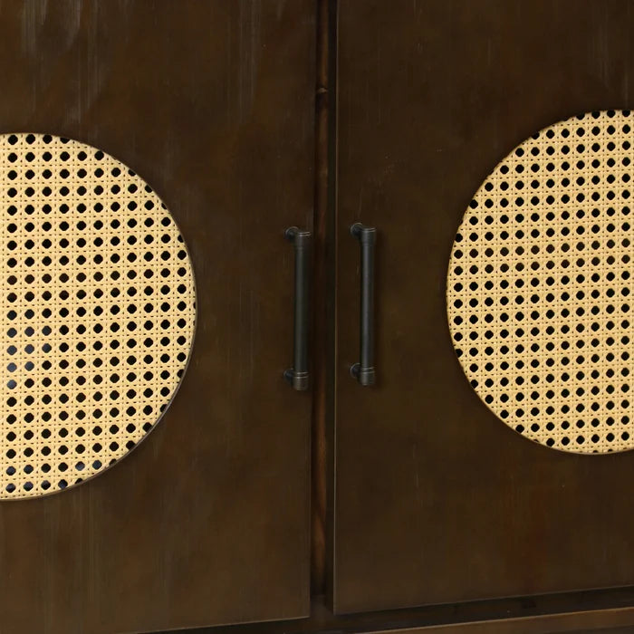 • Woven rattan accents add texture and mid-century modern appeal