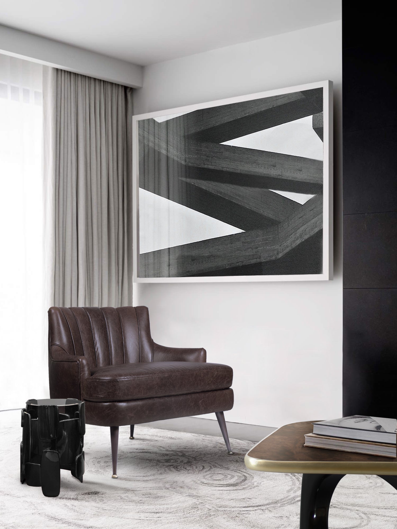 The Plum Armchair is upholstered in leather with legs in matte aged brass. This modern contemporary armchair has a timeless and classic design, making it a very special and unique chair. The Plum Armchair will add a touch of sophistication to your modern interior design. Place it in a modern living room and see it come to life.