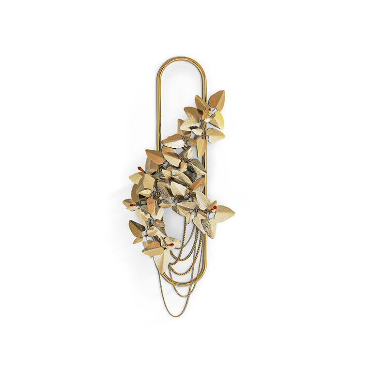 Inspired by the floral leaf motif of the McQueen collection, this wall light features hammered brass with a gold-plated finish and amber crystals that radiate a rhythmic luminosity. The McQueen II Wall Lamp offers the perfect balance of form and function, making it a must-have for any lighting design project that demands sophistication and style.