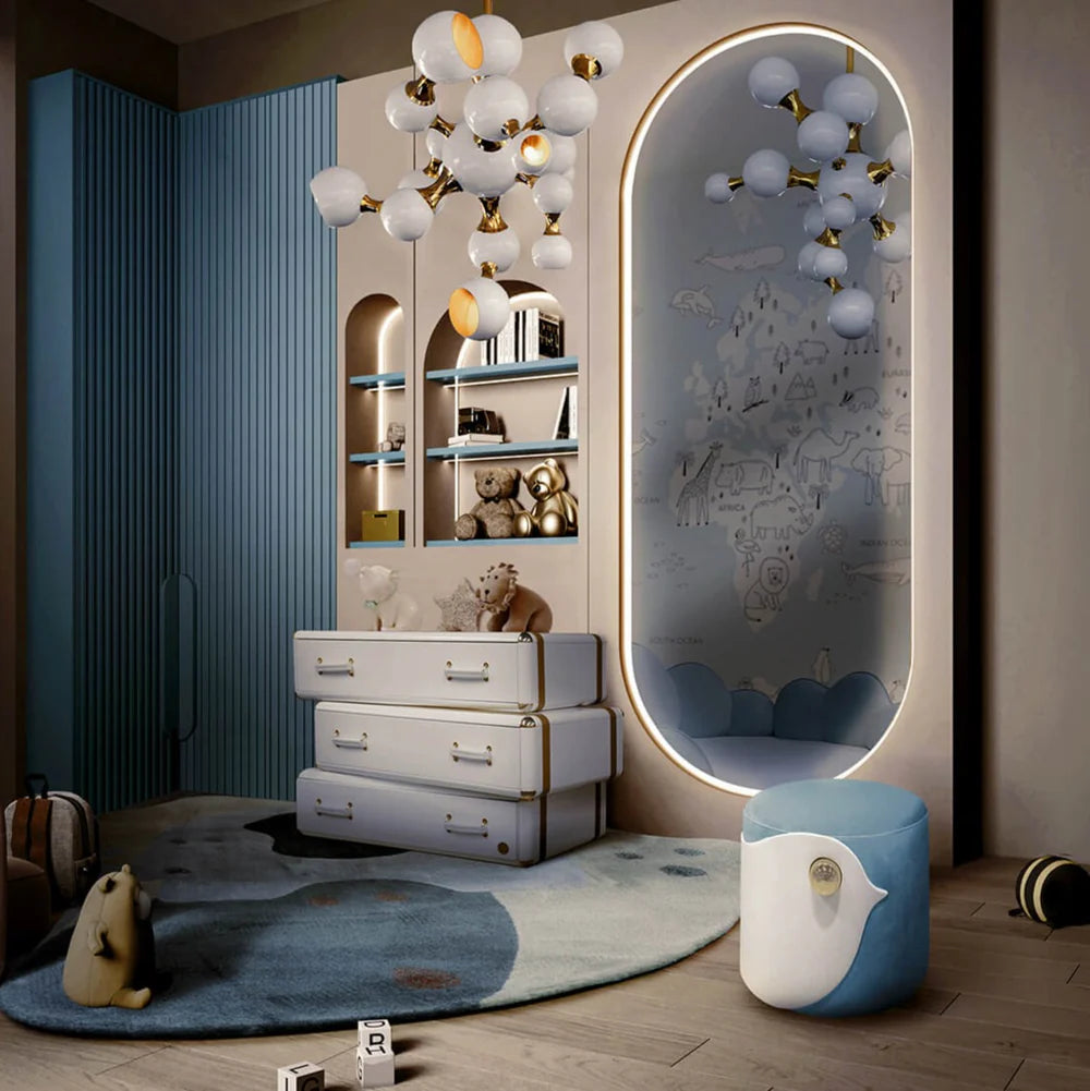 More than taking us to a fantasy world and awaken a wild sense of freedom, this item also has an educational purpose. In order to make it easier for parents to organize the room, the interior provides a storage compartment, intended for toys, scholar objects, or any kids’ treasures. Built-in wood, velvet coated, and with brass details as well as fibreglass resin finishes, it allies the magical design to the extra comfort.