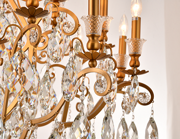 3 Tier Gold Solid Brass Frame Chandelier with Clear Glass Hanging Drops